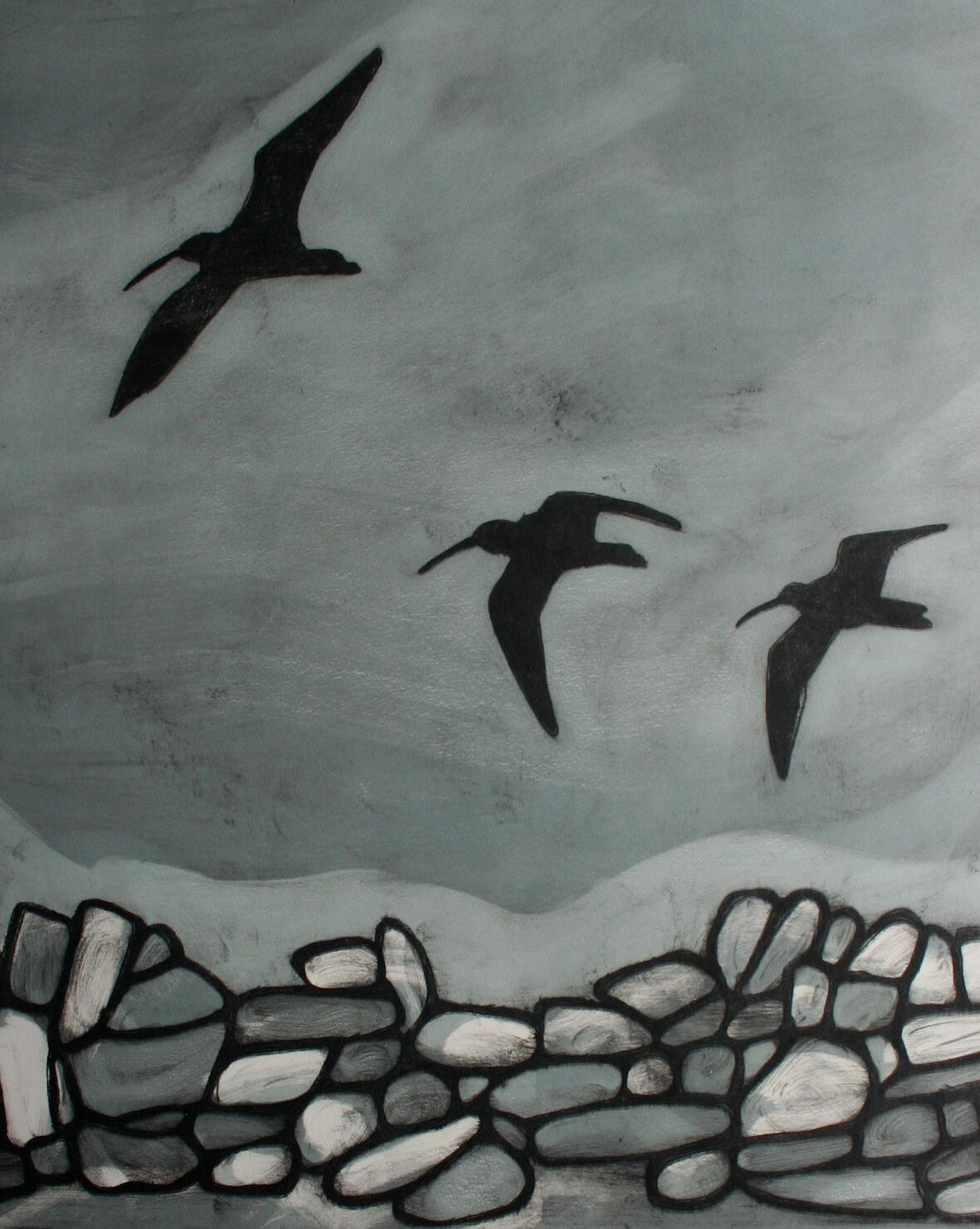 I have experimented a lot in the field of printmaking and have developed a method of monoprinting using drypoint and monotype techniques. I also sometimes work with collagraph plates. The ink I use is a soy based ink, making it kinder to the environment and to me!